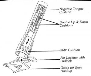 The hitch post is equipped with two poly-urethane cushions that absorb up and down shocks as well as back and forth. A 2 5/16-in. ball coupler at the bottom fits over the ball on your pickup or truck and is equipped with a guide for easy hook-up. A padlock can be used to lock the coupler in the closed position so that it can't be stolen. Models are available with 3 1/2-in. round or sq. steel tubing to fit most trailers.