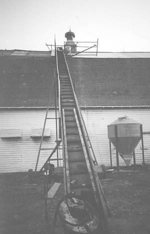 When Mel Meister of West Point, Neb., had trouble finding a contractor to re-roof his 40-ft. high barn roof, he decided he might as well figure out how to do the job himself. The key to getting the job done was converting an old 60-ft. Deere bale elevator into a low-cost scaffold.