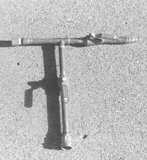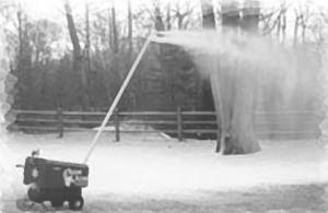 Commercial units like this one from Backyard Blizzard are also available. The basic assembly is made of copper pipe and resembles a "T." The air and water meet in the middle of the "T" as the mixture is shot out into the air. The nozzle is pointed up, usually elevated and attached to a stand for stability. No chemicals need to be added in order to get a nice ground covering.