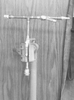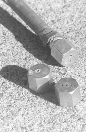 The most expensive piece of equipment is a lubricated air compressor that will run continuously. The only other required hardware is a hose and nozzle, plus a stand used to elevate the hose. "Some people hook up a pressure washer to increase snow production," says Brown. "But the pressure from an outside tap is enough to cover a backyard." The nozzle is just a standard pipe cap that is punctured more or less depending on the amount of snow.