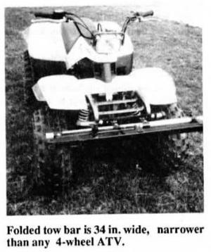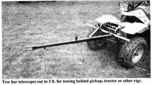 When folded the tow bar is 34 in. wide, so it's narrower than even the smallest 4-wheel ATV's. It telescopes out to approximately 5 ft. for towing behind pickup, tractor or other equipment.