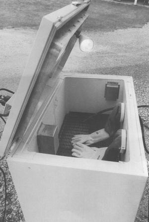 Casey Grant needed a sandblasting cabinet but didn't want to spend $1,000 or more for one. So he came up with the idea of using a deep freezer as the cabinet, which kept the cost down to $150.