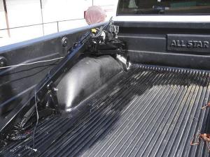 We now have a new Back Saver for loading cargo into pickups. It lifts and lowers with a winch and folds down out of the way over the wheel well for use with a fifth wheel.