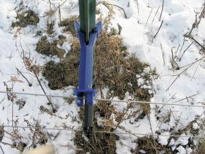 While installing an electric fence in Montana, Jim Gravelle realized that the last quarter-mile of T-posts were placed in the ground backwards. There wasn't enough time to pull all the remaining posts so Jim began modifying the insulators to fit the posts. A year later, the fence was still holding.