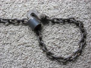 A friend asked me if I had anything to pull 4-in. fiberglass posts because he needed to move a fence. I loaned him what I call my "sure grip chain". It works to pull any size post. It consists of a length of chain, 2 hooks and a 1 -in. pipe coupling. The hook that wraps around the post hooks to the short piece of pipe so it slides down the chain to tighten around anything. Works great and doesn't slip. (Larry Zenz, Parks, Ark.)