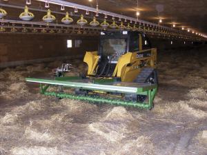 "I recommend running it at 1,500 rpm's or less for the best spreading speed," Campbell says. Rotary Fork uses less bedding material and saves time. Besides straw it can be used to spread rice hulls, peanut shells and shavings.