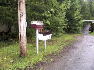 When a UPS truck comes to our place, the driver doesn't even have to get out. Instead, he just drops the package into a box that we made out of an old barbeque gas grill. The driver raises a flag on the grill to let us know a package is waiting.