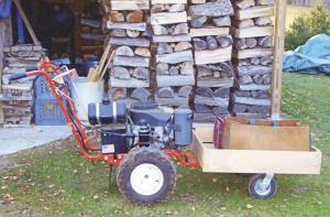Tom Goodman, Malone, N.Y.: "The DR Brush Hog walk-behind mower that I bought used in 2000 is a great machine and does everything the company says it will (ph 800 687-6575; www.drpower.com). Last year I built a 2-wheeled wood hauler that simply bolts on in place of the deck. The box rides on a pair of swivel wheels so it's easy to steer.