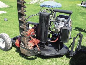To test his ideas, Grosshans designed and built a cattail harvester. The harvester is a trailer about 5 ft. long and 5 ft. wide with ATV-type flotation tires. It's towed by an 8-wheel Argo amphibious vehicle. It carries a small, gas engine-powered, hydraulic pump and a heavy-duty, 6-ft. sickle bar mower.