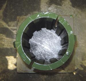 Rebuilding the flywheel consists of tapering the center that fits over the hub. Before tapering an old flywheel, Darr checks it carefully for cracks. One customer took his flywheel to a machine shop and had it Magnafluxed, which Darr says is a good idea.