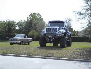 The world’s largest street legal 4-WD pickup was recently unveiled in Denver, Colo. The modified International CXT has pickup styling with monster truck impact.