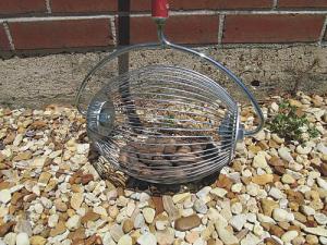 Our simple rolling nut gatherer picks up pecans fast. The basket is made with wire that’s twice as thick as the wire on other nut gatherers so it stands up better to hard use. Another advantage is that our nut gatherer is repairable and replacement parts are available. It comes with an emptying bracket that can be attached to the side of a bucket to help you get the pecans out of the basket and into a pail. (John Cole, www.nuts-about-pecans.com)