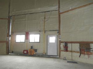 The conversion was relatively simple He used a circle saw with a metal cutting blade to cut out a 16-ft high 20-ft wide doorway Rubingh reinforced the cut edge with steel columns and the top with a steel I beam He mounted a Schweiss bifold door with windows and a walk door in the opening