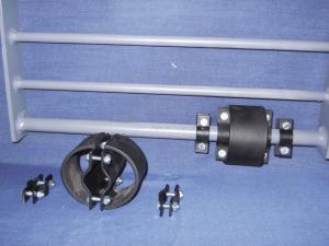 The 3 1/2-in. dia. split wheel comes in two parts that bolt together and is held in place by two clamps. It’s designed to fit onto the bottom round crossbar on gates that are 3/4 or 7/8 in. in dia.