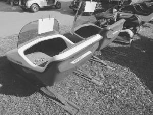1964 Fox Trac 510 2-seater - Built by the Fox Body Corporation in Janesville, Wis., this model is powered by a 10 hp Kohler engine. “The Fox Trac was built during the 1960’s just as snowmobiles were making the transition from work to play machines,” says Thelemann. “It was made to go back in the woods and was used by farmers and trappers. It has steel tracks riding on no. 60 roller chain. The cleats are separated by pieces of canvas that provide flotation.