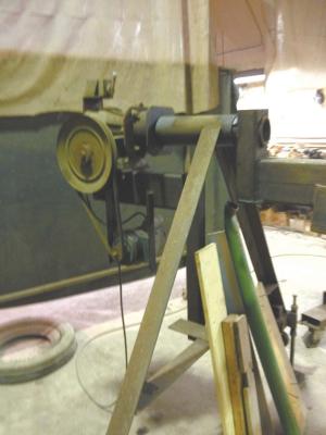 The other end of the table also is attached to a pipe-in-pipe bearing. Both ends are supported by 3 by 3-in., 1/4-in. angle iron legs.