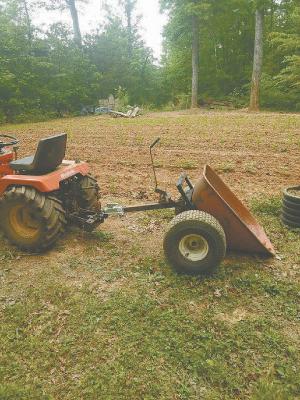 “I use it to haul mulched leaves, rocks and dirt, firewood, and other materials. It’s handy to use - I just reach back and pull a trip lever to dump it,” says James Henson, Union Mills, N.C., who converted an old wheelbarrow into a handy 2-wheeled dump trailer. He tows it behind his Simplicity garden tractor.