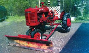 Bob Simpson wanted to push dirt and snow with his little Farmall BN, so he built a frame, mounted a blade and came up with a nifty hydraulic lift. He was given the BN to restore when he retired in 2002. He installed new governor gears and tires and gave it a paint job. However, since adding the blade, the showpiece has turned into a workhorse.
