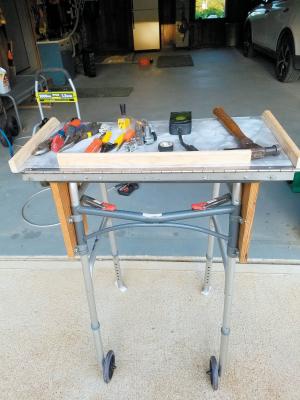 Rolling Walker Turned Into Portable Workbench