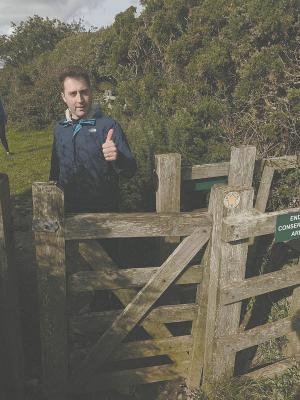 A Couple Of British Ideas FENCING Gates I had the good fortune of traveling to England last fall with my family While hiking around Cornwall with my son-in-law Daniel we came across an access gate in a cattle fence with a design I’d never seen before It consisted of a swinging gate that extends into a U-shaped set of panels leaving just enough room for a person to walk through by swinging the gate back and forth as they passed In the pictures Daniel illustrates how it works On another day during the trip I read a letter to the editor in the local newspaper about a method for combating gophers moles and other burrowing pest animals Here’s what the writer said “When we find a new gopher mound we simply remove the soil over the tunnel to find the hole and then use a leaf blower to blast and deafen the gopher into retreat They hate it and will leave the area So far we’ve had great success It’s simple and eliminates the need for traps or poisons ”