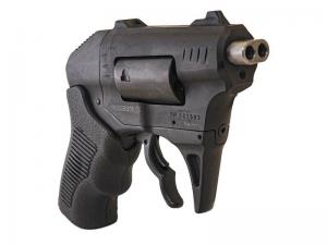 The 3 1/2-in. long revolver with a 1 1/4-in. barrel is a short range gun designed for 12 yards or closer. It has an easy, long trigger pull with a toggle safety. It’s safe and simple to use, even for people who don’t do a lot of shooting.