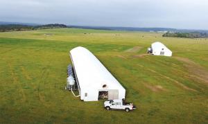 The ARC is designed to hold 6,000 birds because that’s enough to fill a standard poultry transport trailer. It’s a 7,500-sq. ft., clear span structure, powered by its own solar array. Electric motors on the drive wheels move the 50 by 150-ft. ARC 50 ft. in 7 to 10 min. That is based on the rate a chicken can comfortably walk. Every day, it automatically moves sideways to fresh pasture. When it gets to the end of the field, the articulating wheels turn 90 degrees, and the ARC moves to fresh pasture on the next swath. The next day it starts a return trip down the field.