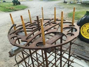 “The subframe is a combination of rebar and vertical bolts that extend through a 1/2-in. thick skeleton top steel plate,” says Gutschmidt. “To install it, we dig a 5-ft. deep, 4-ft. dia. hole and place the subframe with the skeleton plate below the surface. The skeleton plate ensures we can fill the hole to the top with concrete without concern for a void forming under the plate.”