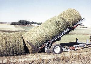 Weight of the machine is 5,300 lbs. At least a 65 hp tractor is needed to pull the hauler, which can be used at speeds of up to 6 mph depending on type of bales being moved, Nitzsche says. An electric solenoid control valve mounts on the side of the bale hauler. Only one hydraulic hookup is needed on the tractor.