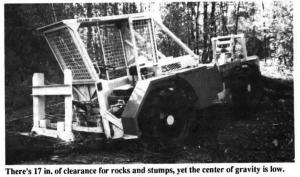 Maury Collins, of Nelson, N.H., says his 58-hp prototype is equipped with front or rear PTO, front and rear 3-pt. hitch, foot-controlled hydrostatic 4-WD, center articulation and oscillation, and four 11.2 by 24 ag tread tires. It's powered by a Ford 140 cu. in. 4-cylinder water-cooled gas engine, with both driver and engine protected by a wire brush cage.