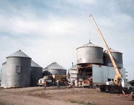 "It took the operator of the crane only about 45 minutes to set both bins on top of the frame. To raise each bin we hooked chains onto a truck tire and then attached the crane's cable to the chains."