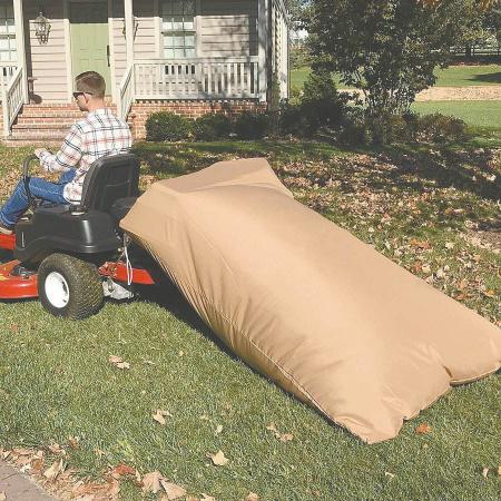 If you get frustrated by the small capacity of your riding mower’s bagger attachment – especially when picking up leaves - you might like this 54 cu. ft. leaf bag that simply ties on over your bagger’s blower housing and drags behind the mower as you chop leaves.