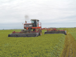 "It'll cut 32 ft. of hay at a time, or up to 20 acres per hour," says Crick.